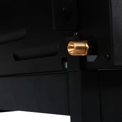 De kast en schappen eronder bieden ruimte om kookbenodigdheden op te bergen. Dankzij de 2 stevige wielen is de tuinbarbecue gemakkelijk te verplaatsen wanneer dat nodig is (niet verplaatsen als hij in gebruik is). Opmerking: om de barbecue op de gasfles aan te sluiten, zijn een gasslang en een geschikte drukregelaar vereist. Deze zijn niet bij de levering inbegrepen.